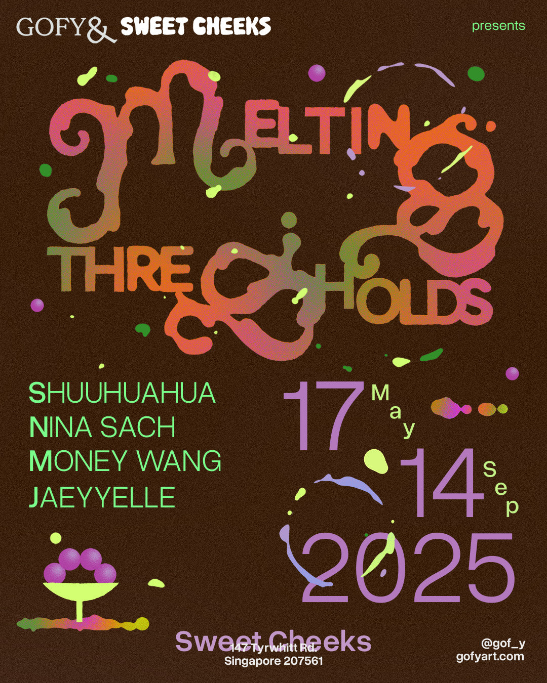 Step into a realm where imagination and creativity dissolve boundaries as GOFY& presents Melting Thresholds. Featuring works by four South East Asian artists: Shu, Nina Sach, Money Wang, and Jaeyyelle, the exhibition invites you to explore the liminal spaces between reality and the surreal, uncovering the transformative power of dreams and the infinite possibilities they inspire.