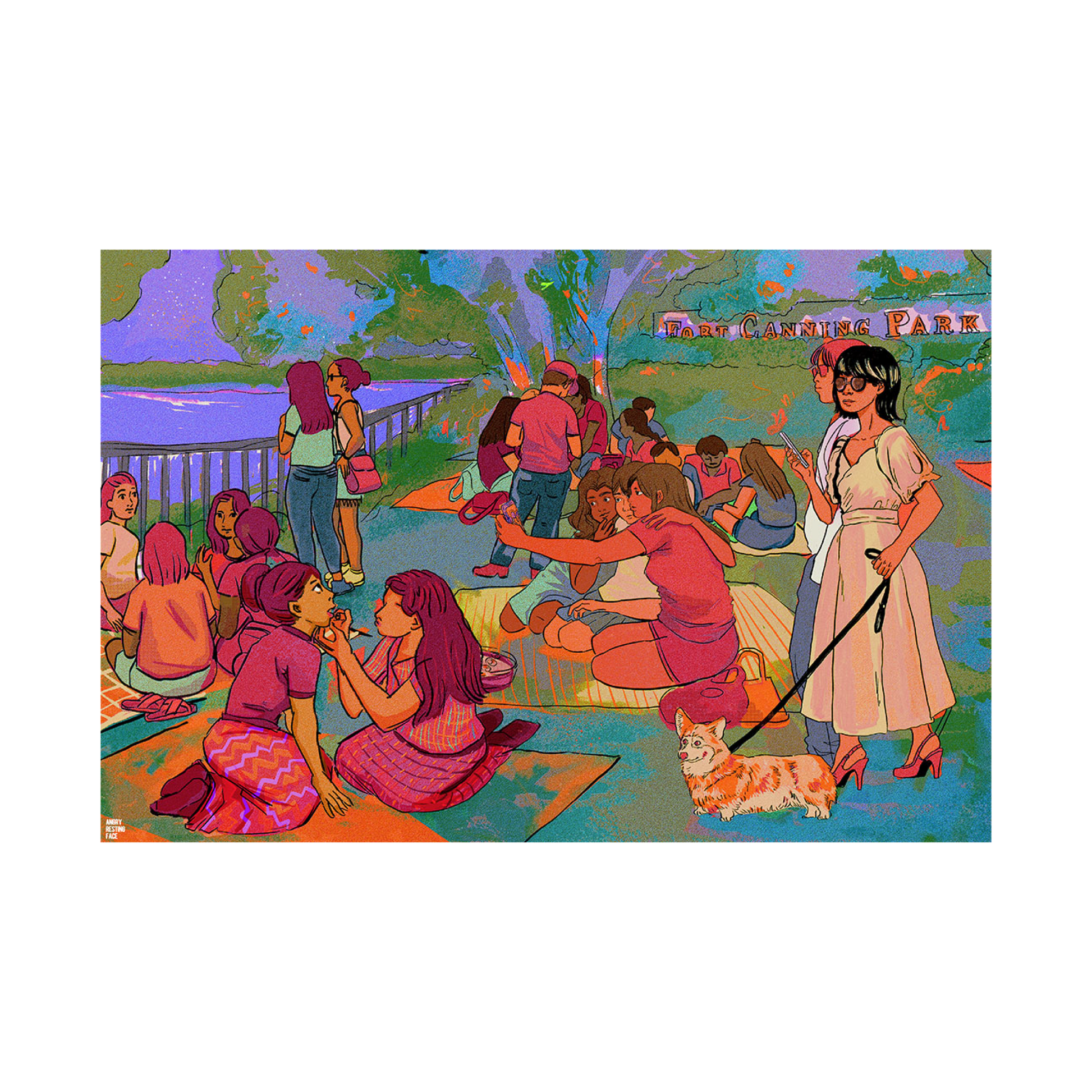 Phoebe Ting/Angryrestingface is an animator and art director from Singapore. Her illustration style consists of vibrant hues and heavy use of textures to represent the gritty nature of the characters. She also enjoys mixing traditional painting techniques in digital form to create more complex layers of colours and details.