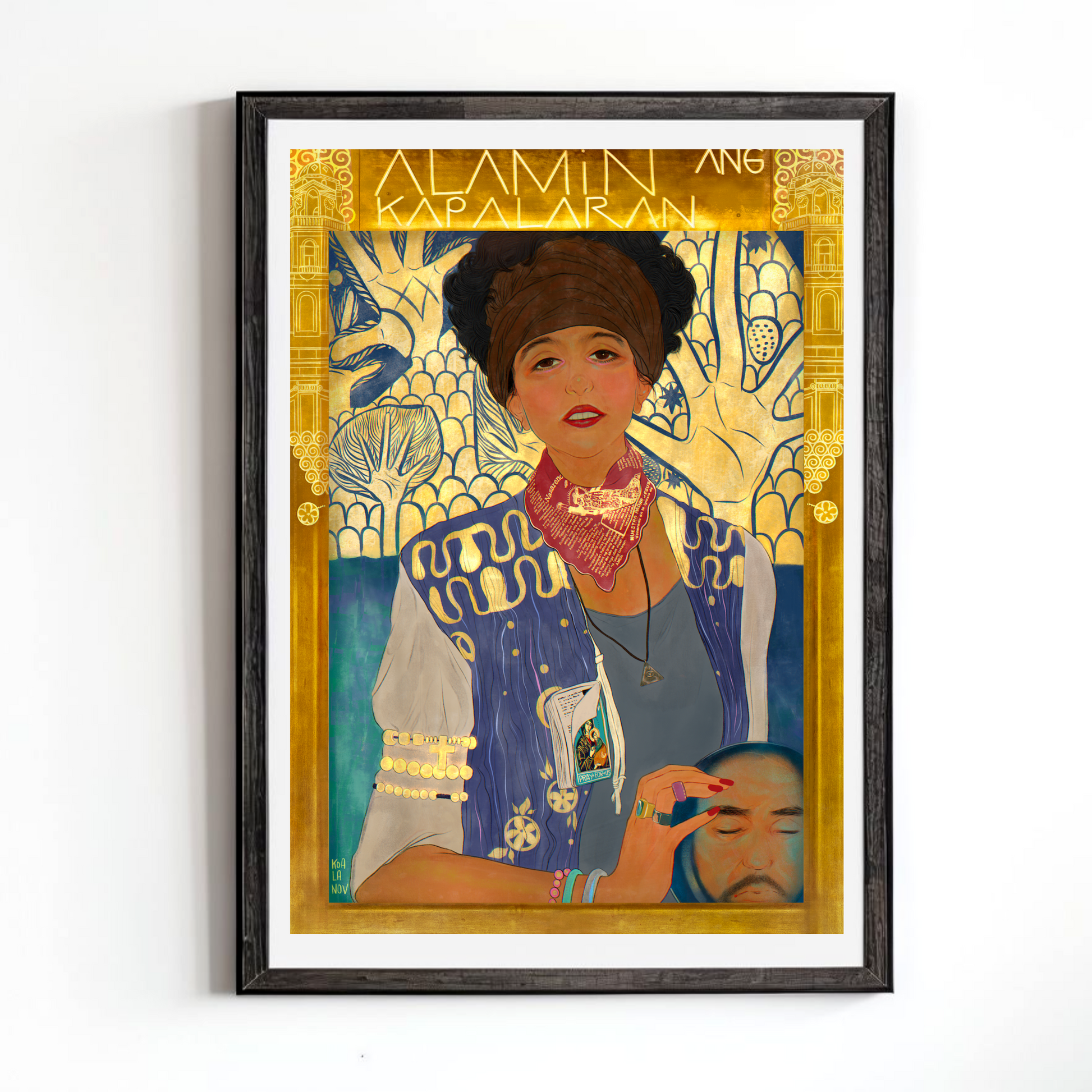 Ang Manghuhula sa Plaza Miranda (The Fortune Teller in Plaza Miranda) is derived from Gustav Klimt’s version of the iconic Western painting Judith and the Head of Holofernes. The famous art has been rendered and interpreted by many artists from the Renaissance period as well as in Modern art. Judith’s depiction, specifically from the Renaissance has often been one of comedic role reversal, sourced from the irony of a femme-fatale triumphing over a powerful male figure in the context of a largely patriarchal European society. This specific trope in art has also been closely associated with the depiction of women being involved in witchcraft in the 15th century, lending an air of danger and mysticism to more common associations of women (desire, sexual allure etc.) during that period in history.