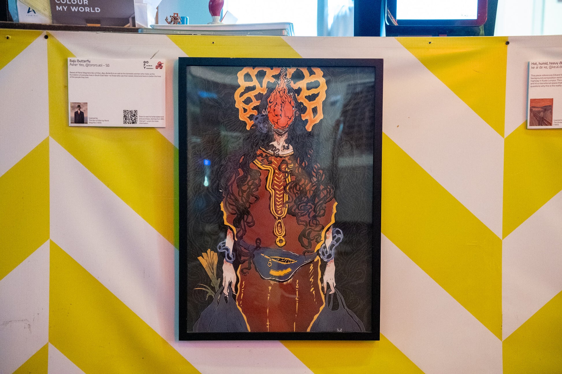 Based off René Magritte's Son of Man, Baju Butterfly is an ode to the domestic women who make up the foundation of everyday lives in South East Asia—to those who use their sweat, blood and tears to better the lives of the people they love.