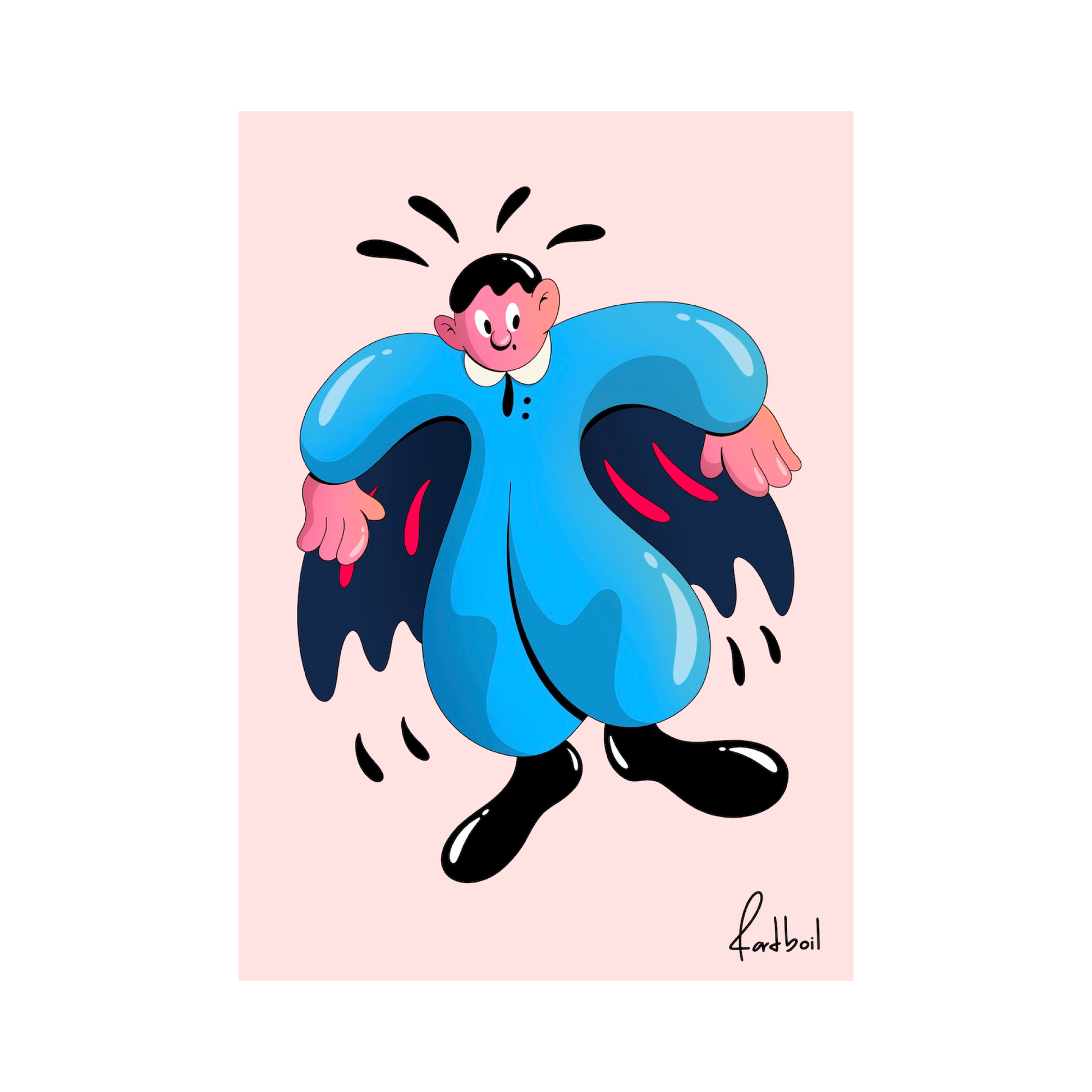 Fartboil is an artist based in Bangkok, Thailand. With a background in architecture, he started his career as a designer, subsequently taking interest in illustrations and tattoos. His works are inspired by traditional tattoos, old cartoons and nature, and by experimenting through colors and distorted visuals.