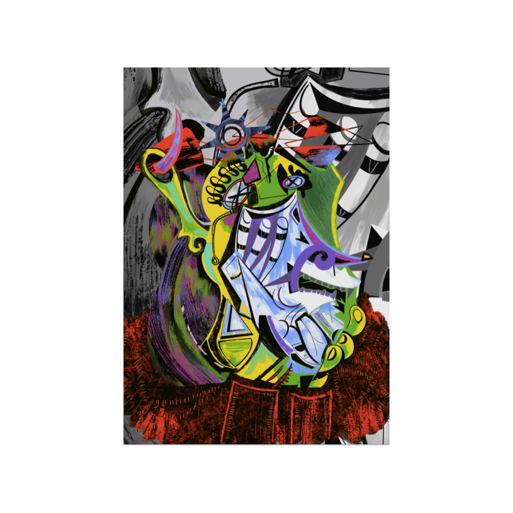 After seeing Picasso's Femme en pleurs at the Tate Modern, Eberta was deeply affected by its themes of suffering and loss, later deciding to draw upon that catharsis to create Contained Distress. Her reimagination of Picasso's painting uses tribal masks and tattoos from the Dayak tribes of Borneo, whose people are known for their fearless ability to overcome challenges that come their way.
