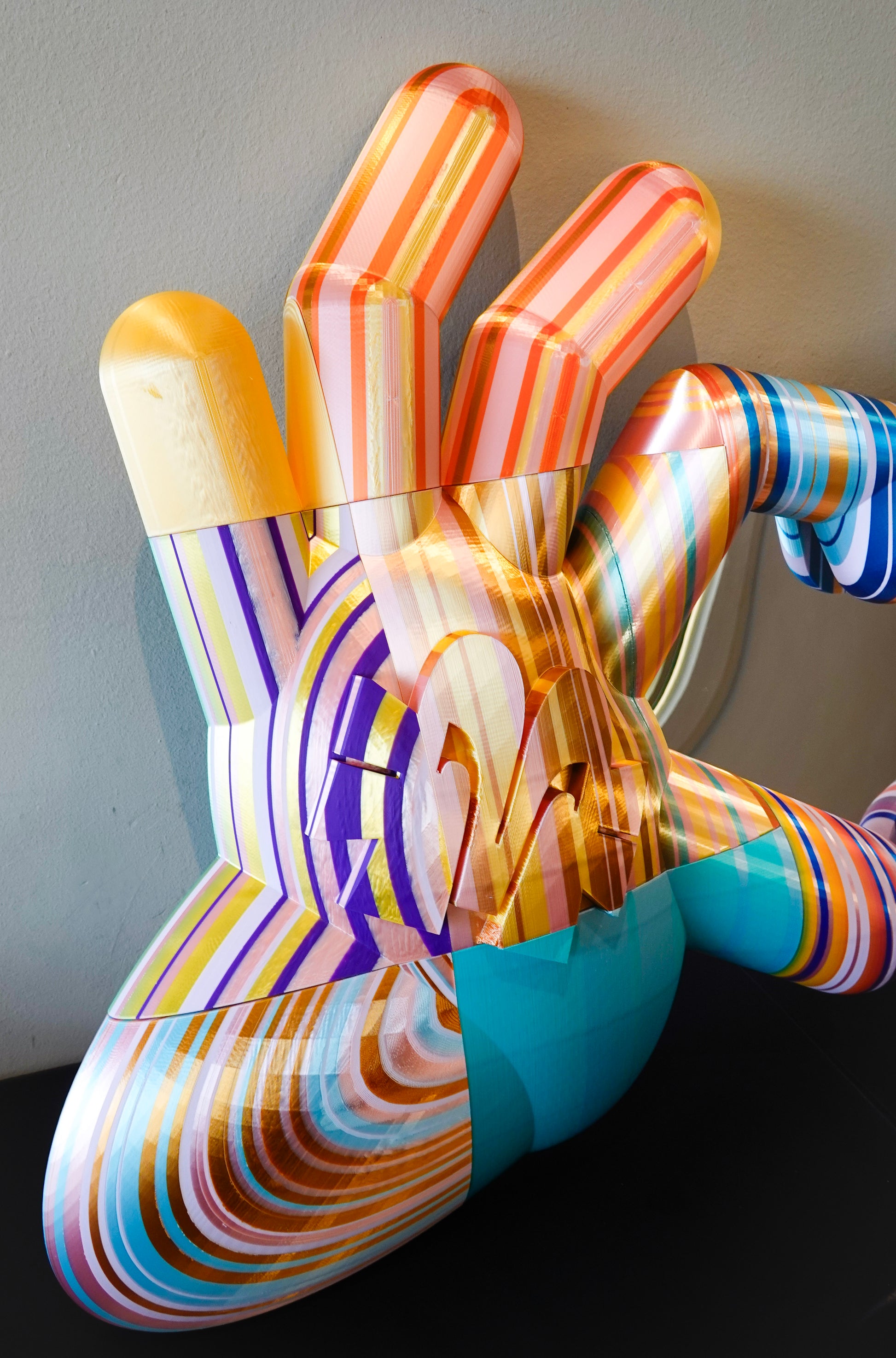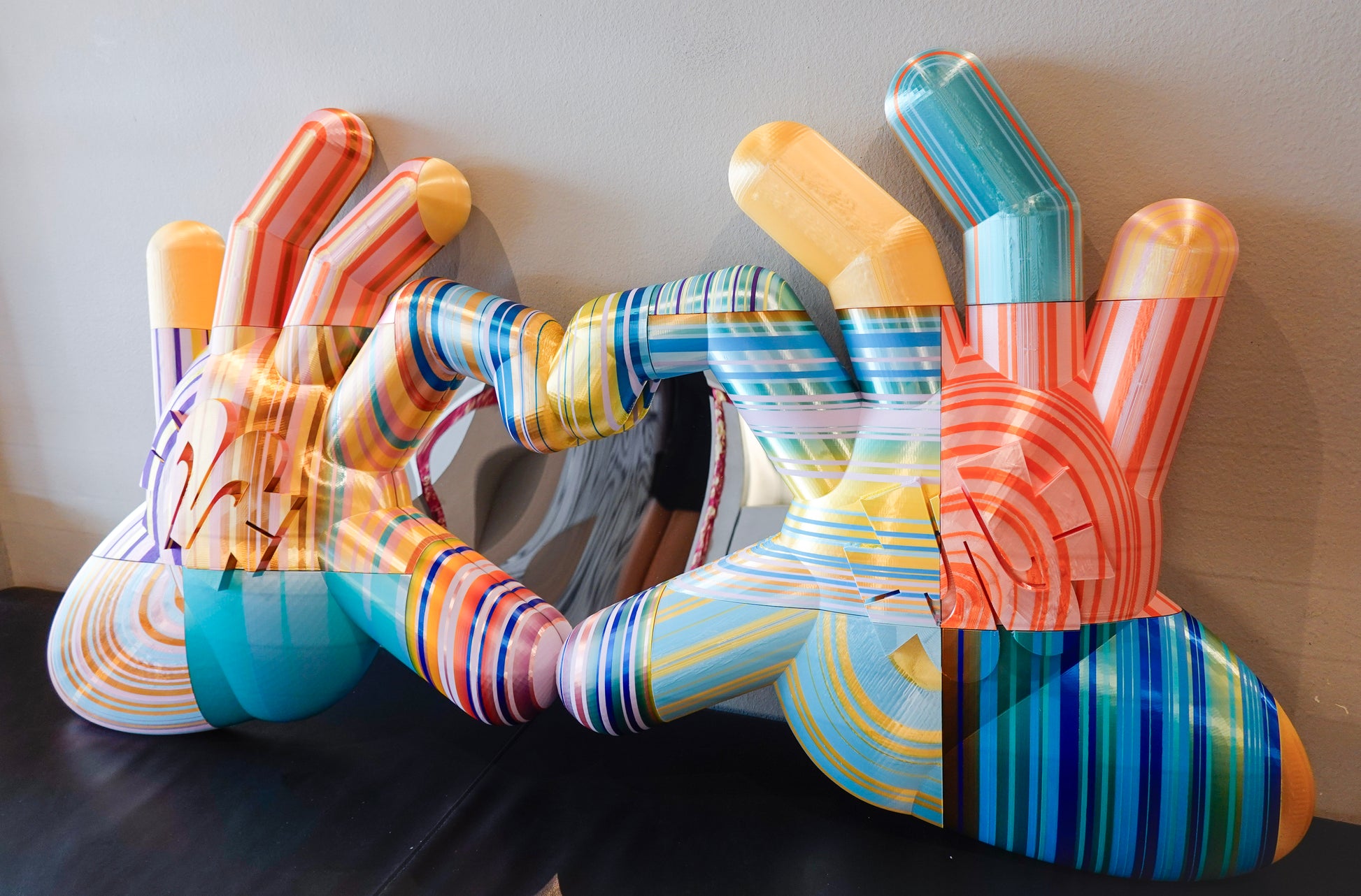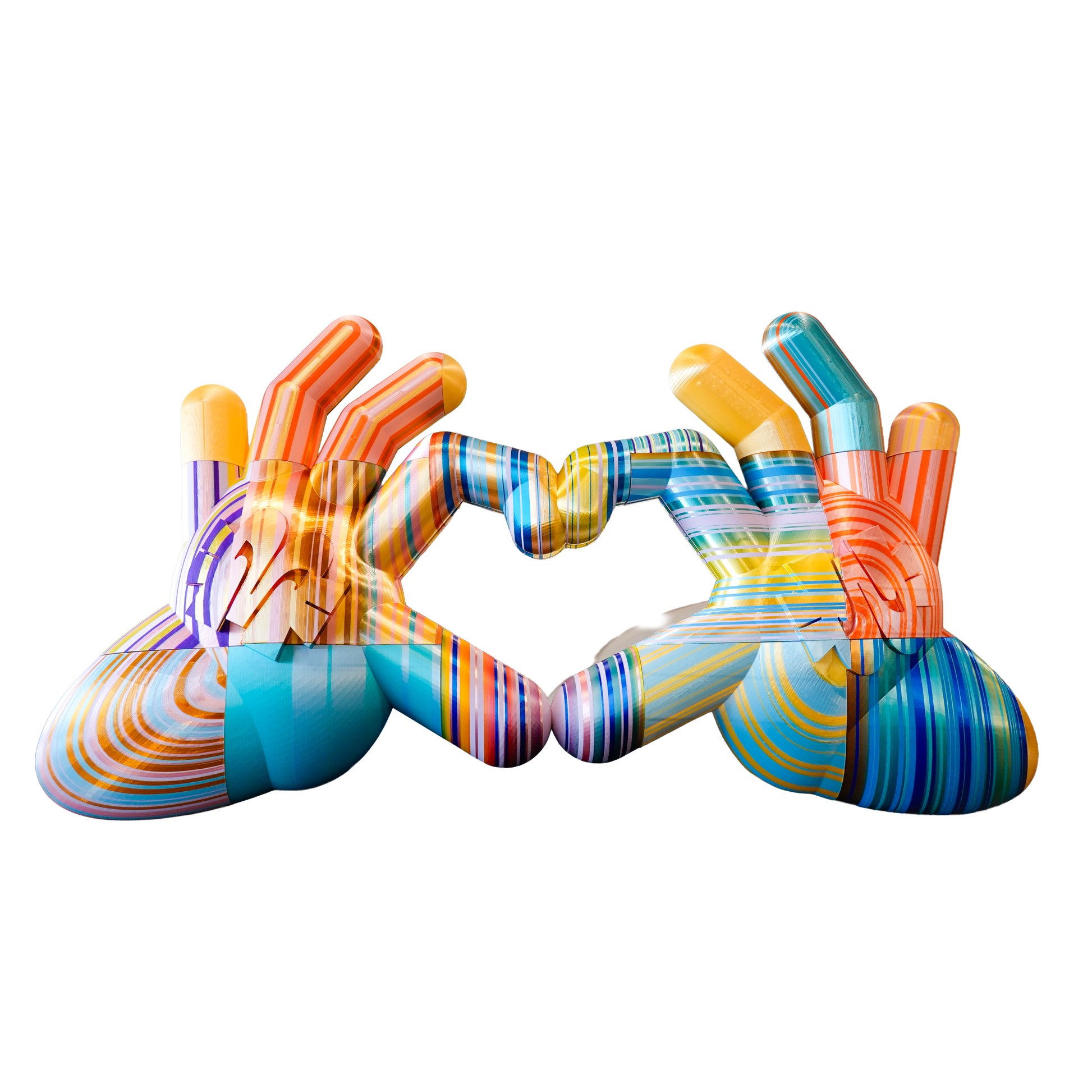 Money Wang’s sculptural mirror transforms a familiar gesture—the heart hands—into a tactile portal for love, friendship, and quiet fondness. The piece takes the shape of two hands forming a heart, framing a mirror at its center. By combining gesture and reflection, the work invites viewers to see themselves through the lens of care and connection.