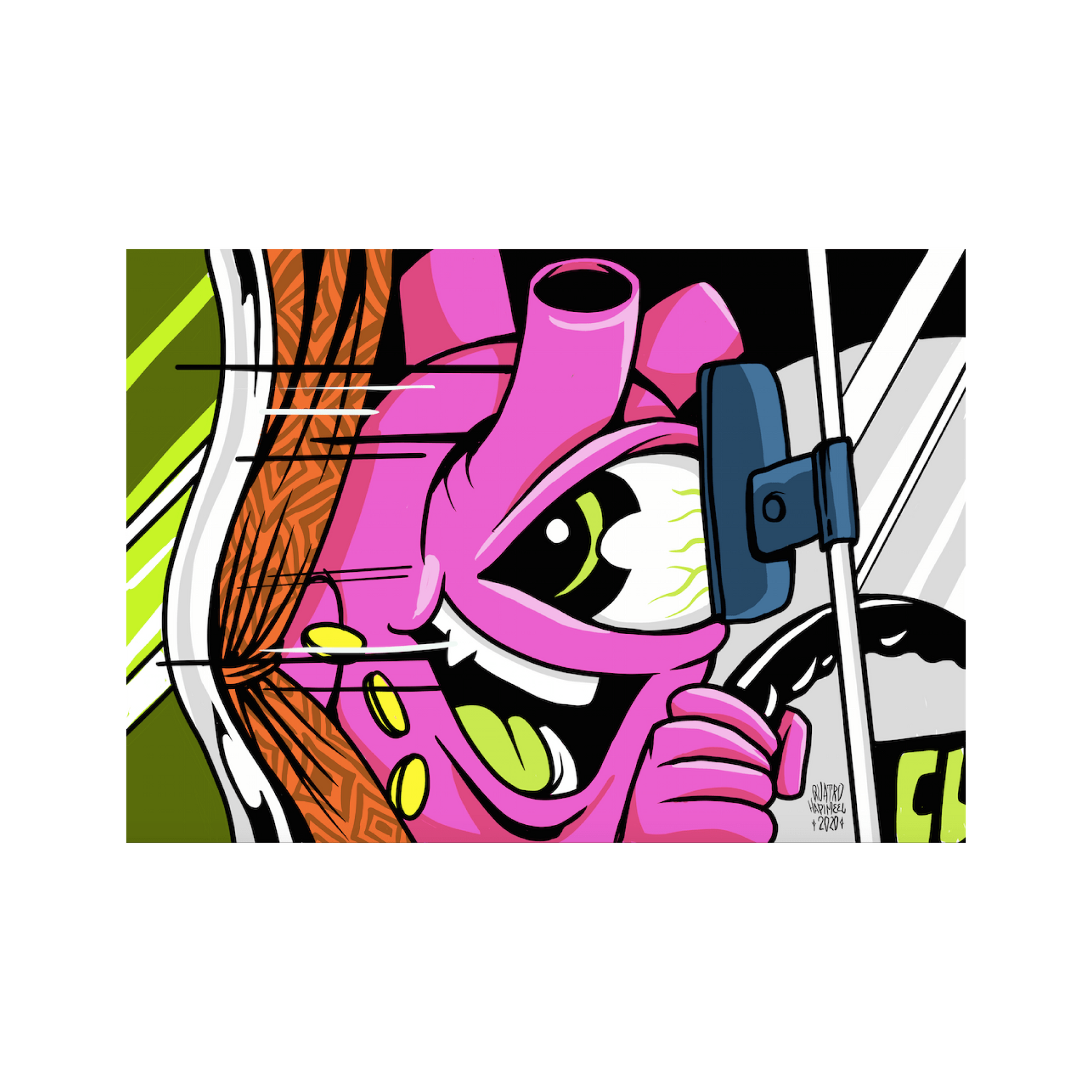 While his works borrow heavily from pop culture aesthetics, Quatro is inspired by personal experience: his ever-changing surroundings, and strong emotions from his past. Melancholy, death, nostalgia, and disconnect, all come together to form a compelling contrast with his original smiling heart character. He hopes that his work can represent people who remain strong in the face of tragedy and loss.