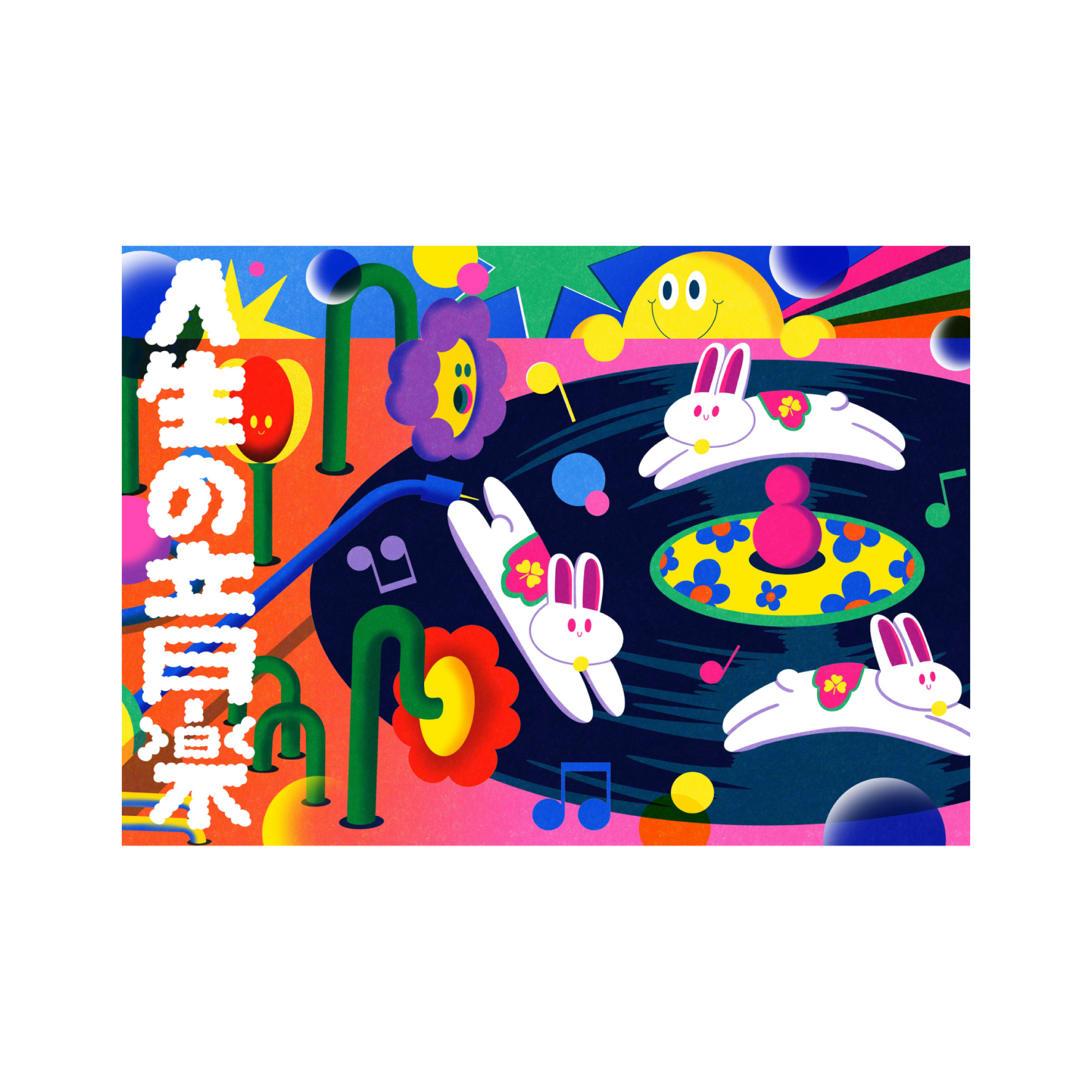 This artwork presents an enchanting tableau where playful bunnies dance joyfully around a turntable. Each bunny is brought to life with a burst of vibrant colours, representing the joy, diversity, and spontaneity of musical expression. Through this playful yet profound imagery, the artist invites viewers to revel in the interconnectedness of sound, movement, and the boundless energy that defines our everyday experiences.
