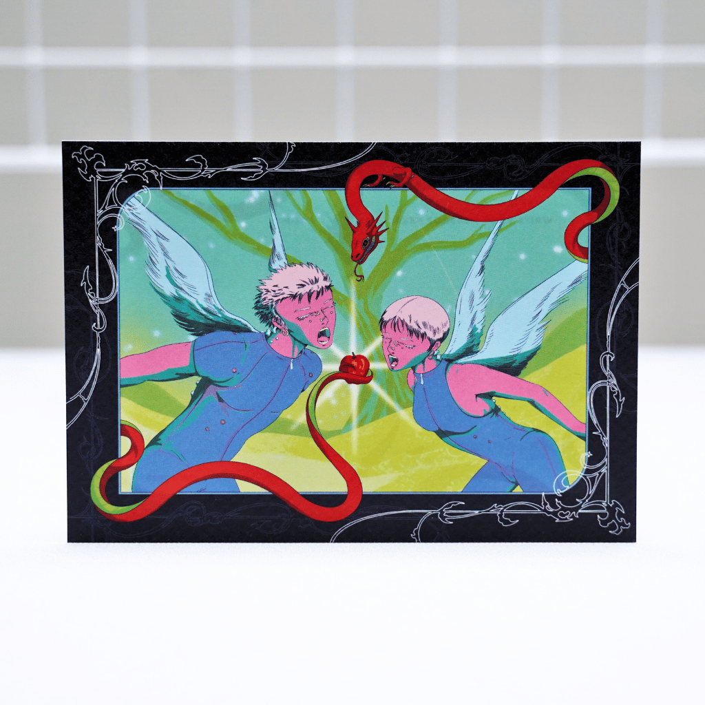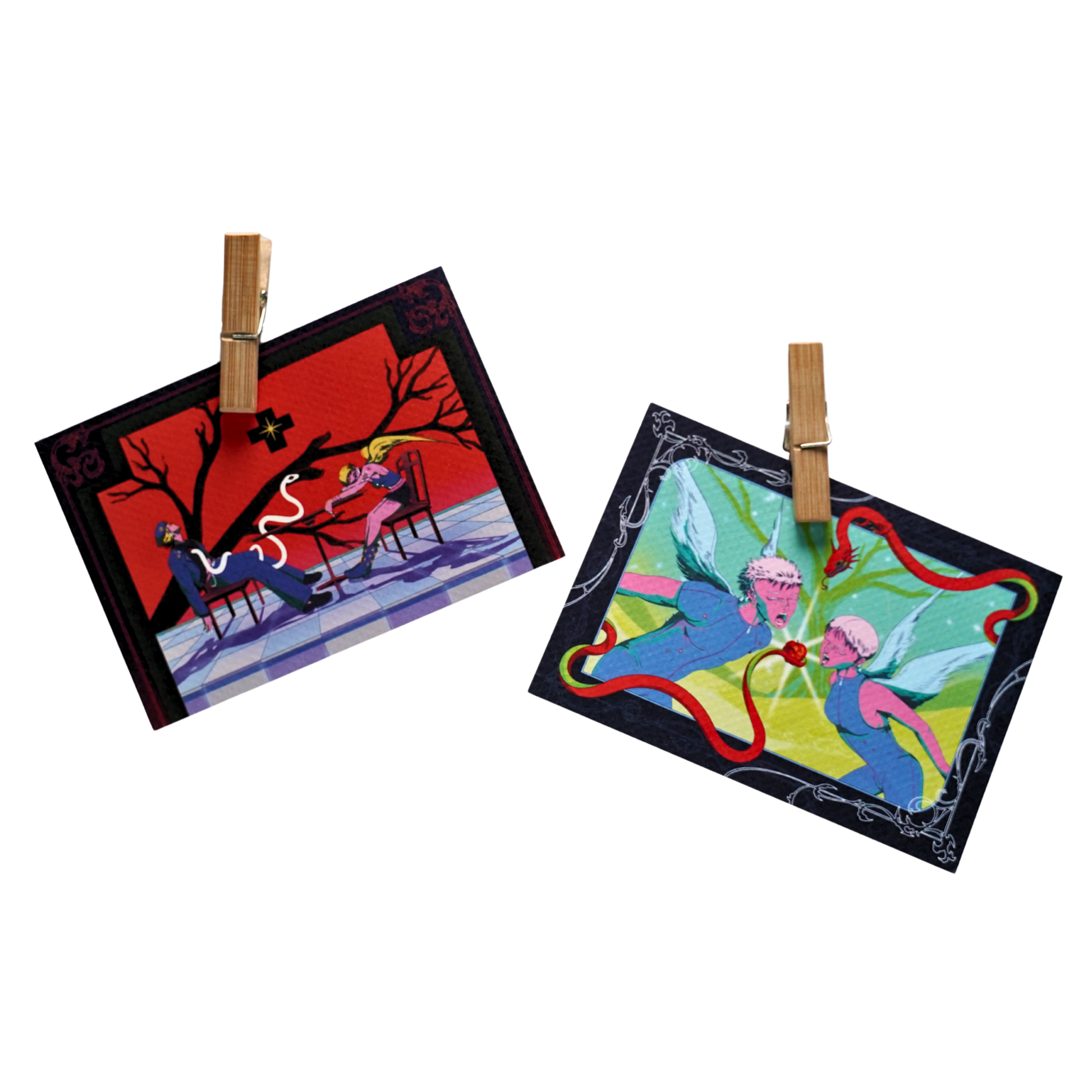 Brighten someone’s day with these striking postcards by STRXNDEDBOY. Each card showcases bold, surreal illustrations inspired by myth and symbolism (Lilith and Adam and Eve), brought to life through vivid colours, dramatic contrasts, and expressive figures. Printed in postcard format, they’re perfect for art lovers, collectors, or anyone who enjoys sending visually unique mail with a creative edge.