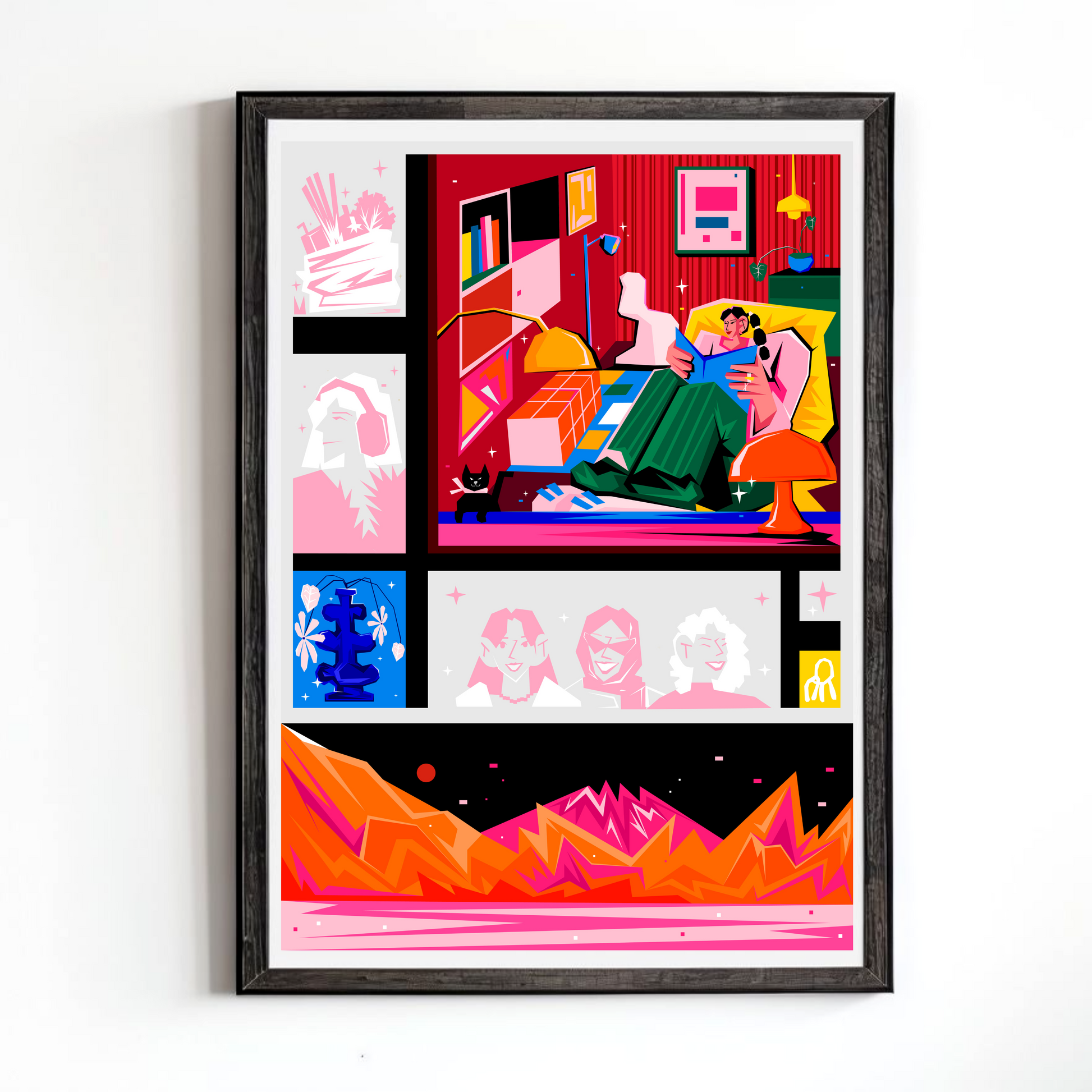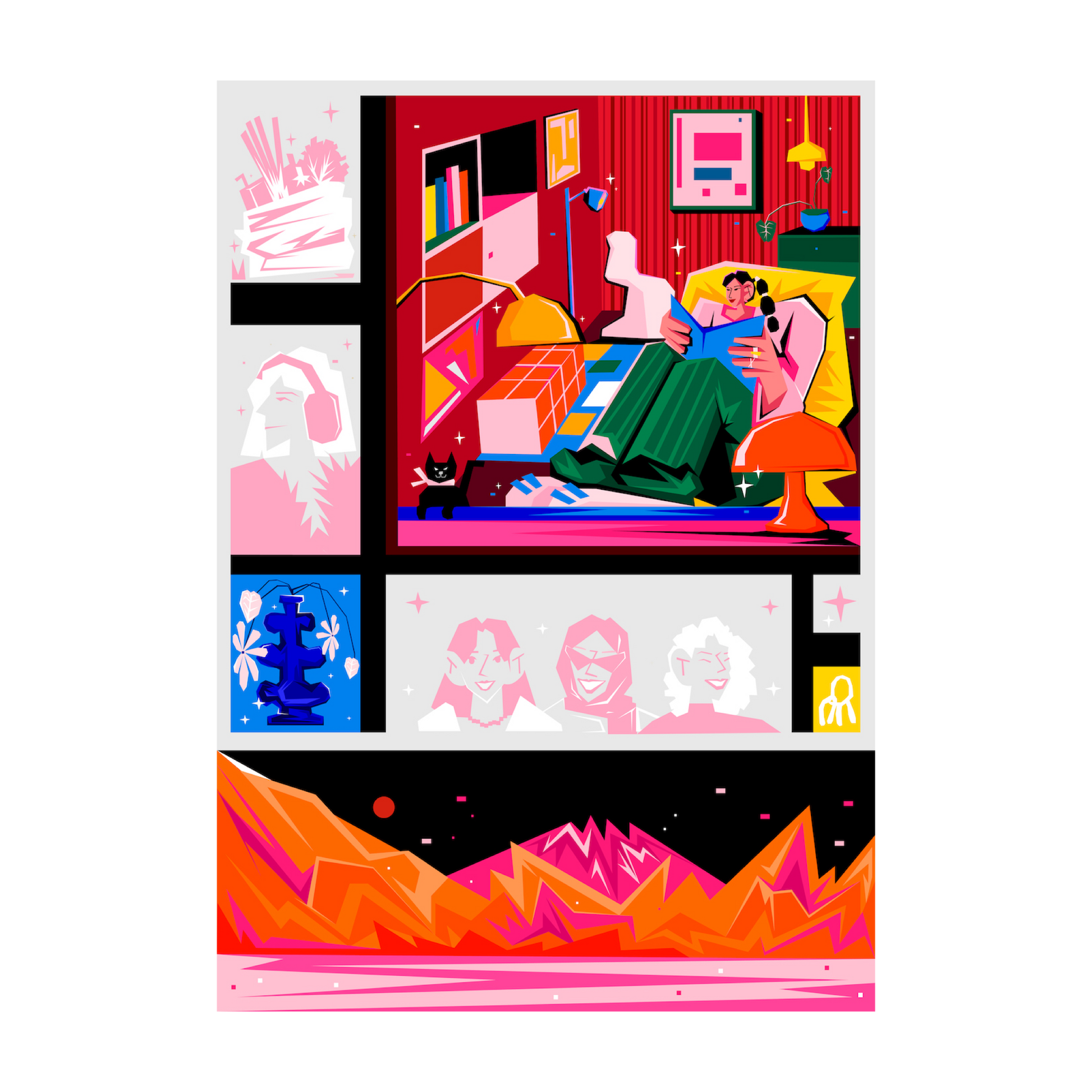 Erin is a graphic designer and freelance illustrator based in Yogyakarta, Indonesia. Her exploratory practice is informed by her design sensibilities, employing colourful geometry to create lush illustrations.