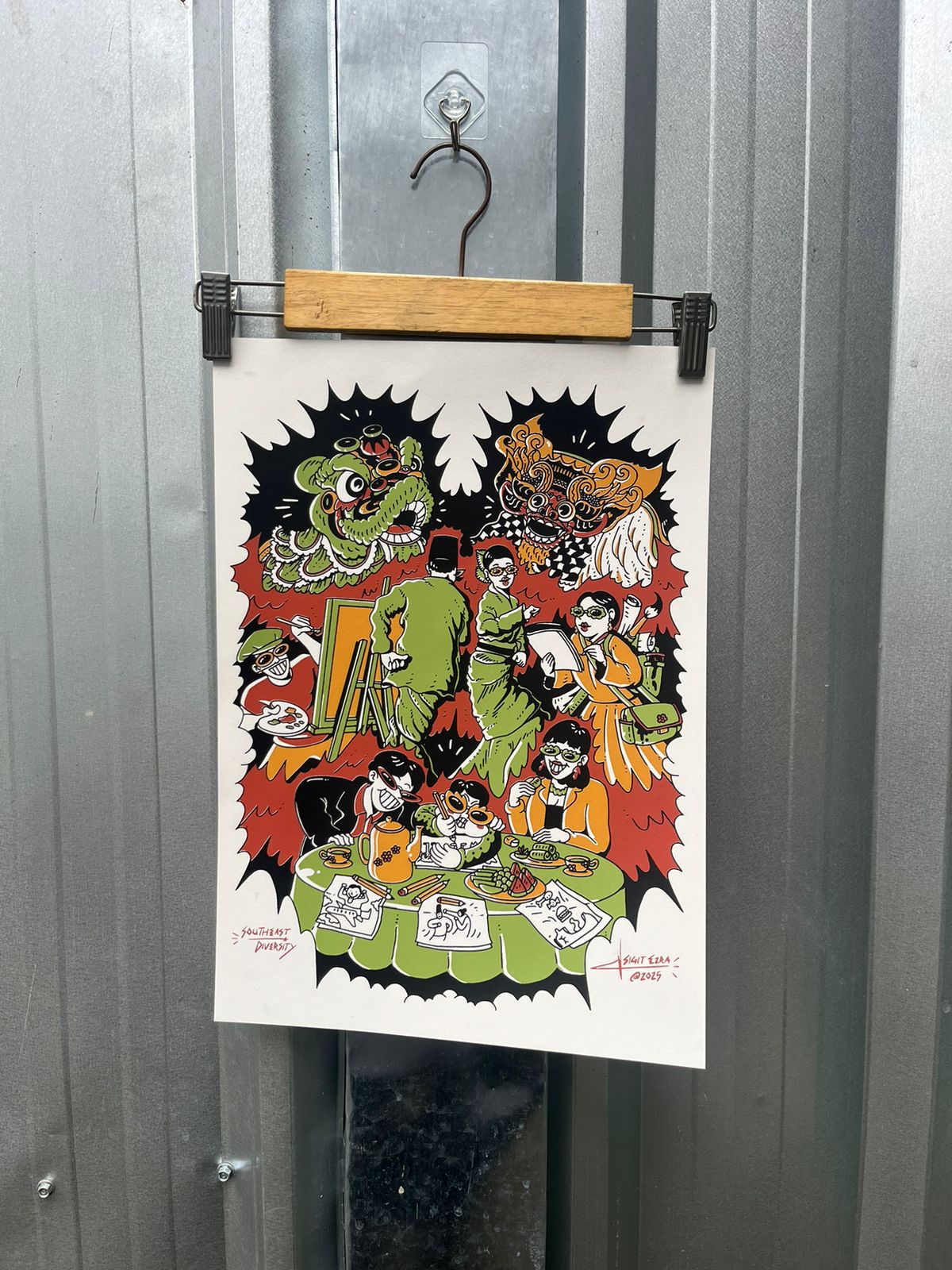 In his visual works, rough lines, retro colours, and a touch of witty satire are Sigit Ezra's way of telling stories through his visual art.