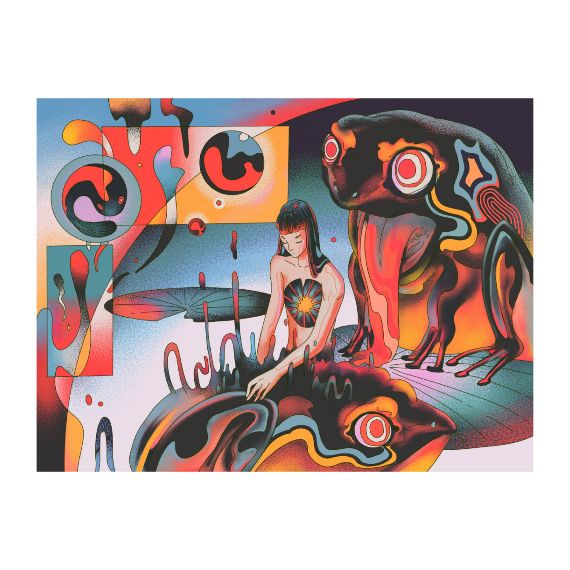 Charmaine Tan, also known by her alias Fraunfraun, is a Singapore-based illustrator and 3D artist whose colourful creations blend surreal imagery with familiar sights from the world around us. Drawing inspiration from her experiences, she weaves together fiction and reality; with visuals from the films she has watched, to the natural world she grew up with. She explores the concept of home through memory, an ever-changing entity that transforms loved ones into frogs, or feelings into ethereal shapes and abstractions.