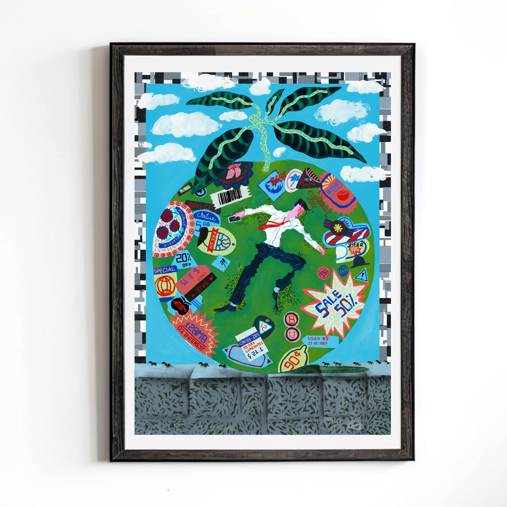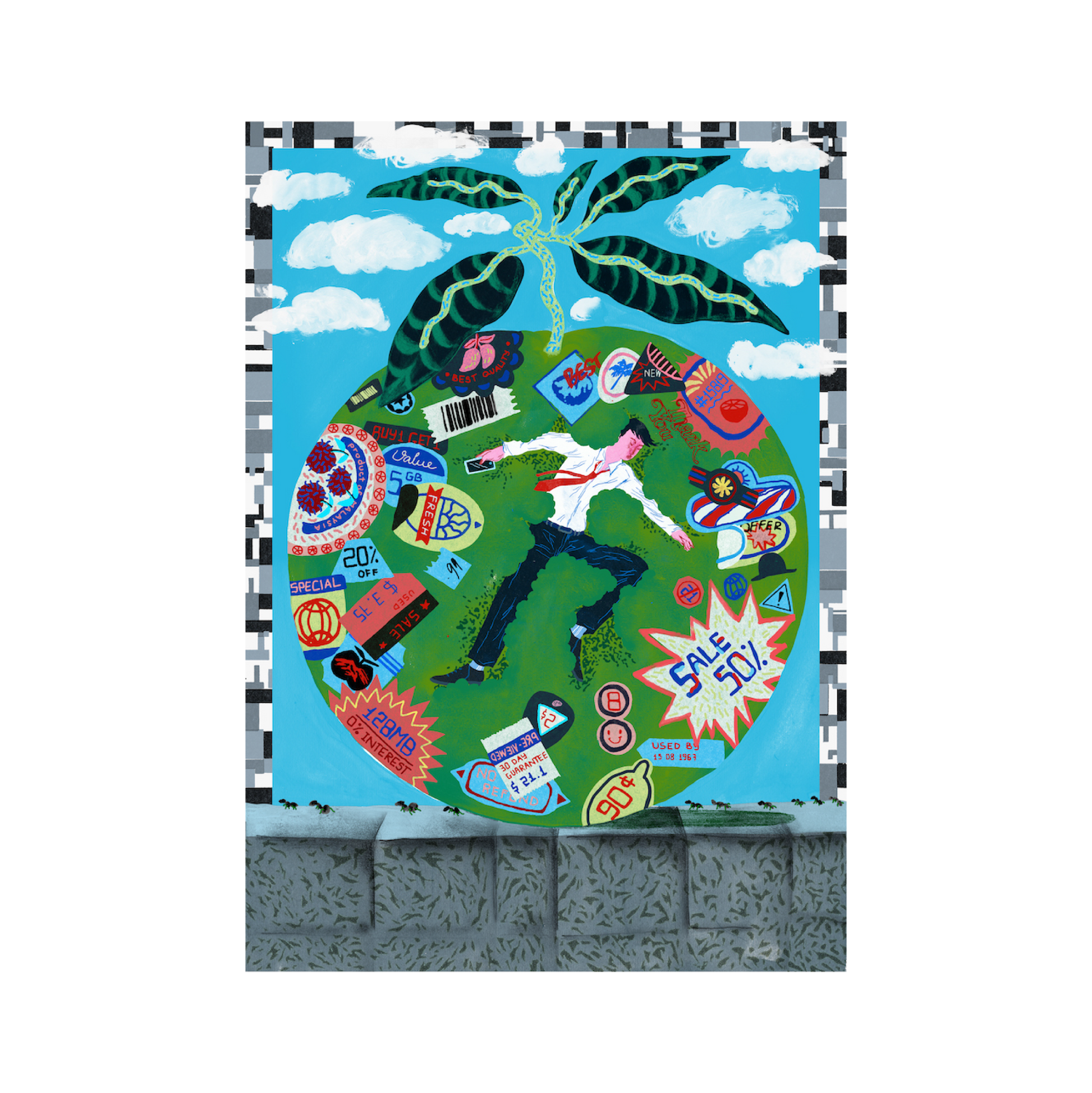 A homage to René Magritte, this piece is a whimsical juxtaposition set in contemporary Asian society, where the world of blind consumerism sinks salary-people into weariness.