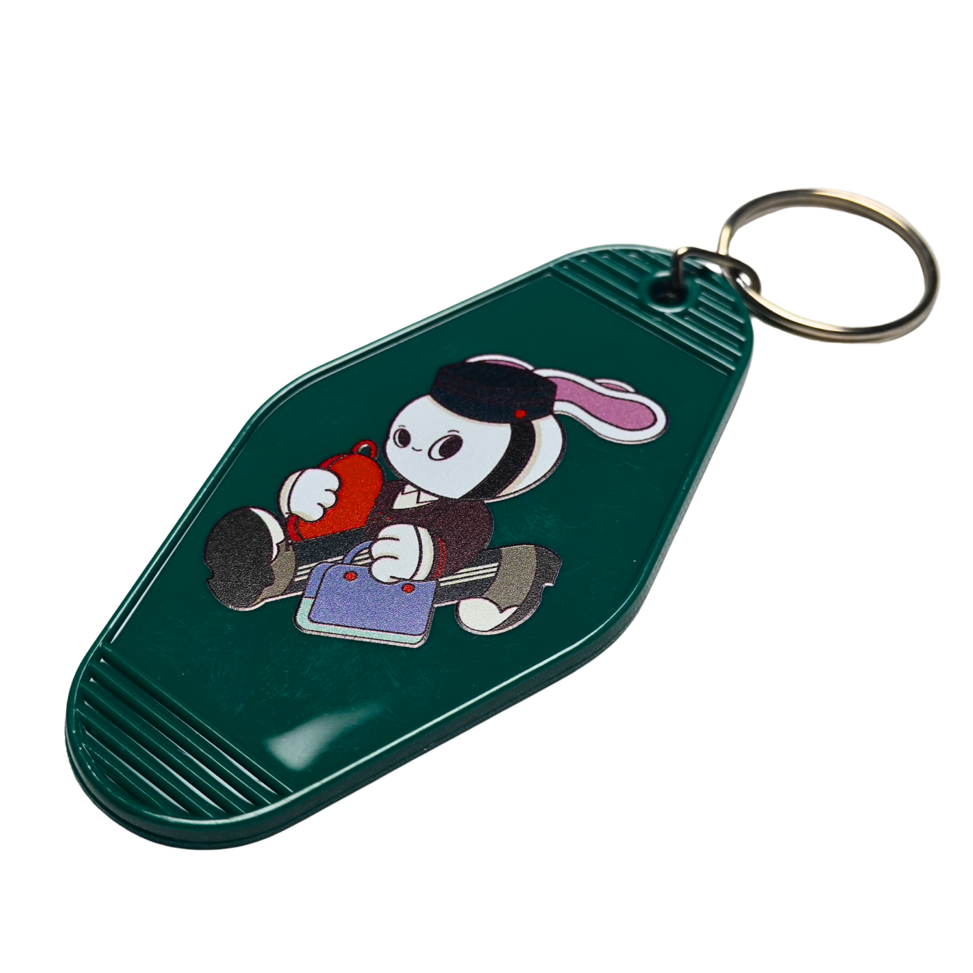 Bring a touch of retro charm wherever you go with this classic motel key tag. Featuring a playful design of Refli's iconic rabbit character, Tukii, exploring the vibrant streets of Tokyo, this keychain blends nostalgia with wanderlust. A cute and stylish accessory for keys, bags, or as a collectible souvenir for travel lovers.